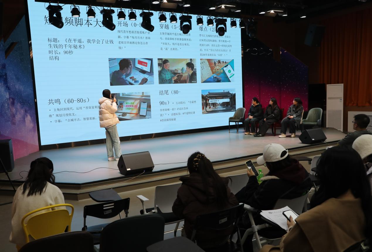 实战策划展评环节将活动推向高潮。八个小组围绕“城市心跳”短视频挑战赛命题,在24小时内完成从社会洞察、脚本撰写到多平台标题设计的全链条策划,并在路演现场接受导师团“15分钟展示+5分钟答辩”的严苛考核。刘明晓导演逐一点评,一针见血指出“核心价值不突出”“平台话术后置”等痛点,并给出“抖音三秒钩子+小红书美用值+B站深度共情”的迭代方案,让同学们在思维碰撞中迅速完成认知升级。