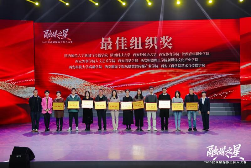 12月15日,2025“融媒之星”陕西融媒体主持人大赛在陕西广播电视台圆满落幕。在西安工商学院和微影星火数字传媒产业学院共同组织指导下,我校师生表现卓越,一举荣获大赛铜奖、最佳组织奖、优秀指导教师奖三项荣誉,充分彰显了我校在融媒体播音人才培养方面的扎实基础和创新能力。