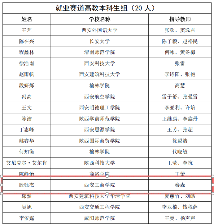 就业赛道本科生组获奖名单(部分)