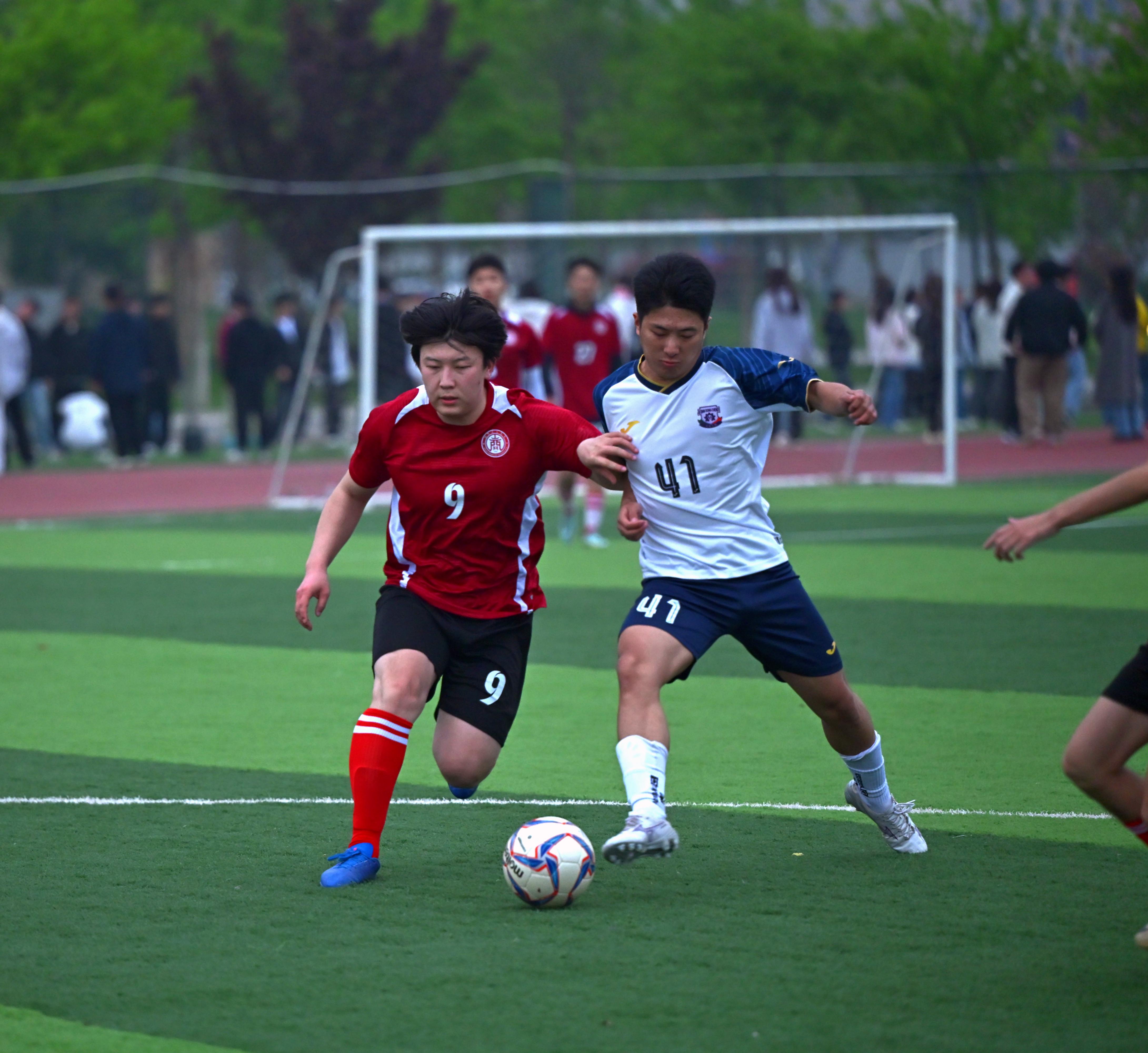 2026年4月8日下午,西安工商学院艺体节足球赛在细雨中正式开赛。雨水浸湿球衣,却未能熄灭参赛队员的竞技热情;看台上助威呐喊响彻赛场,为春日绿茵对决注入澎湃活力。